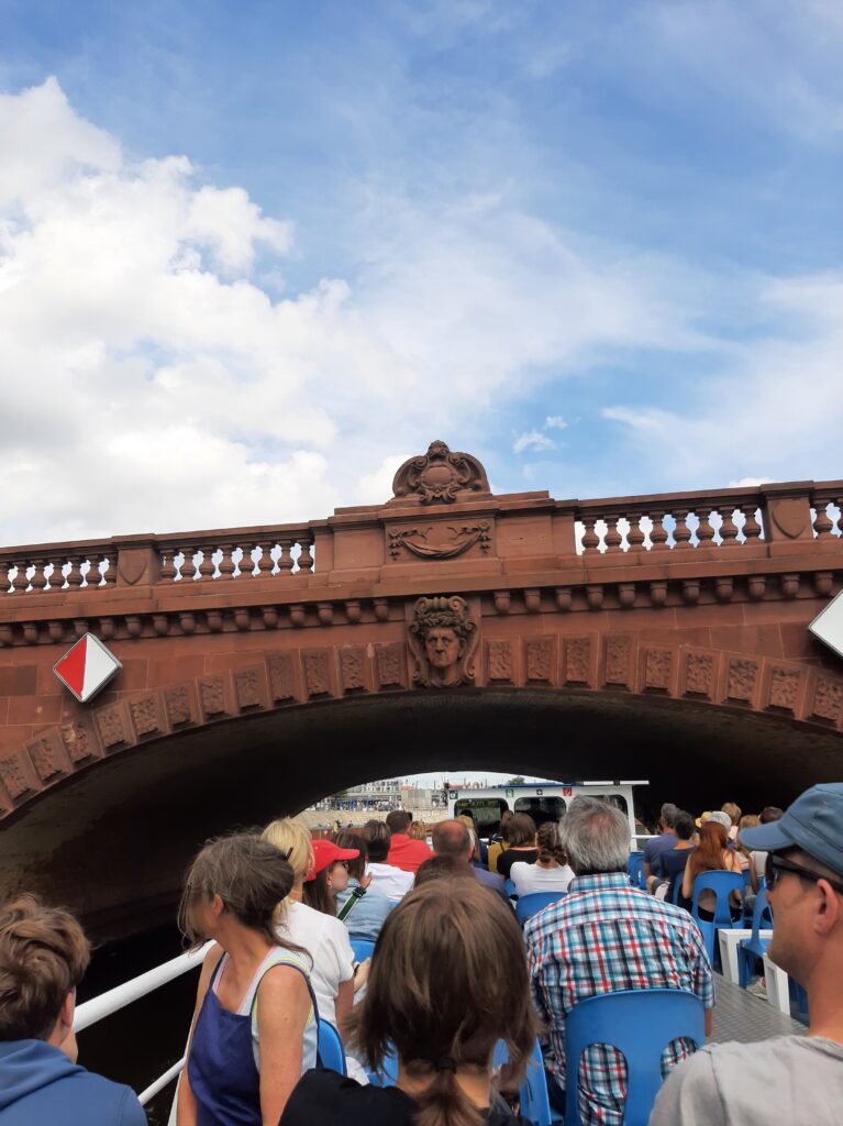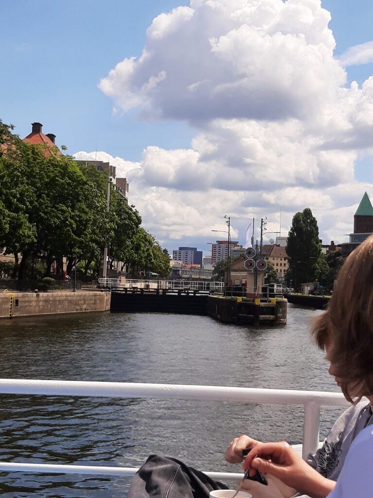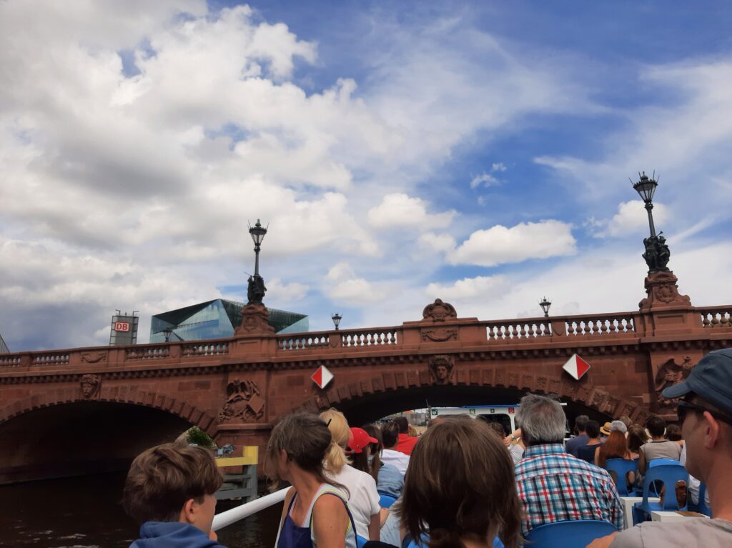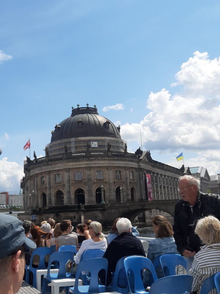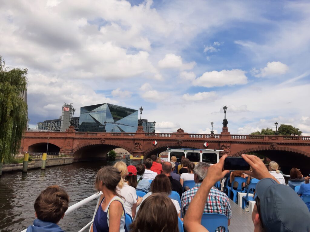 Dann brachen wir zu einer Spree-Bootsfahrt auf. Wir lernten Berlin ein wenig vom Wasser aus kennen. Alte neben neuen Gebäuden, Museumsinsel, Bahnhof Friedrichstadt mit dem Tränenpalast, Reichstag, Kanzleramt, und gefühlt 50 Brücken (alte teilw aus dem 18. Jahrhundert und neue),…..Berlin hat viele grüne Flecken Erde. Die Uferanlagen der Spree können alle zum Verweilen und Erholen genutzt werden. Was noch erwähnenswert ist: Die Deutschen arbeiten die dunklen Flecken in ihrer Geschichte auf. Weder das Thema Judenverfolgung/Holocaust noch das DDR-Regime mit seinen Grausamkeiten wird totgeschwiegen. Diese beiden Themen begegnen einem an allen Ecken und Enden und sollen als Mahnmal stehen.