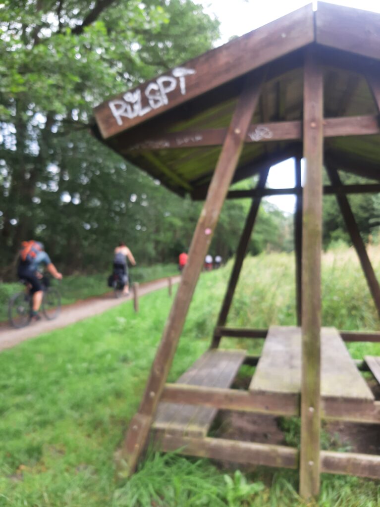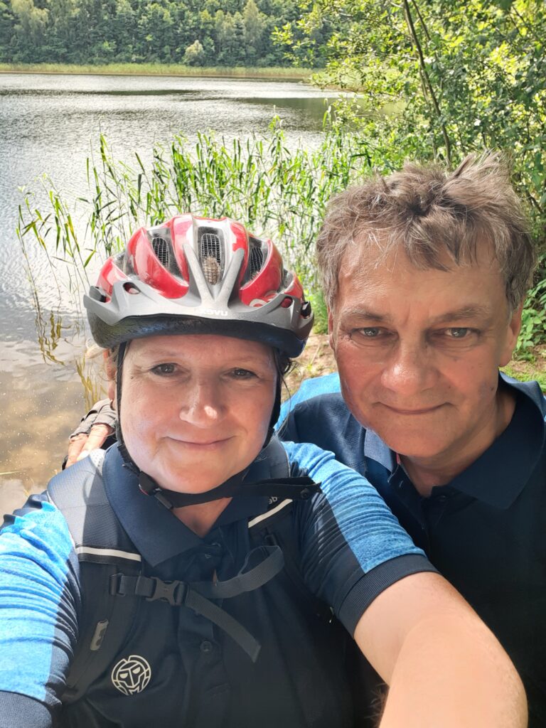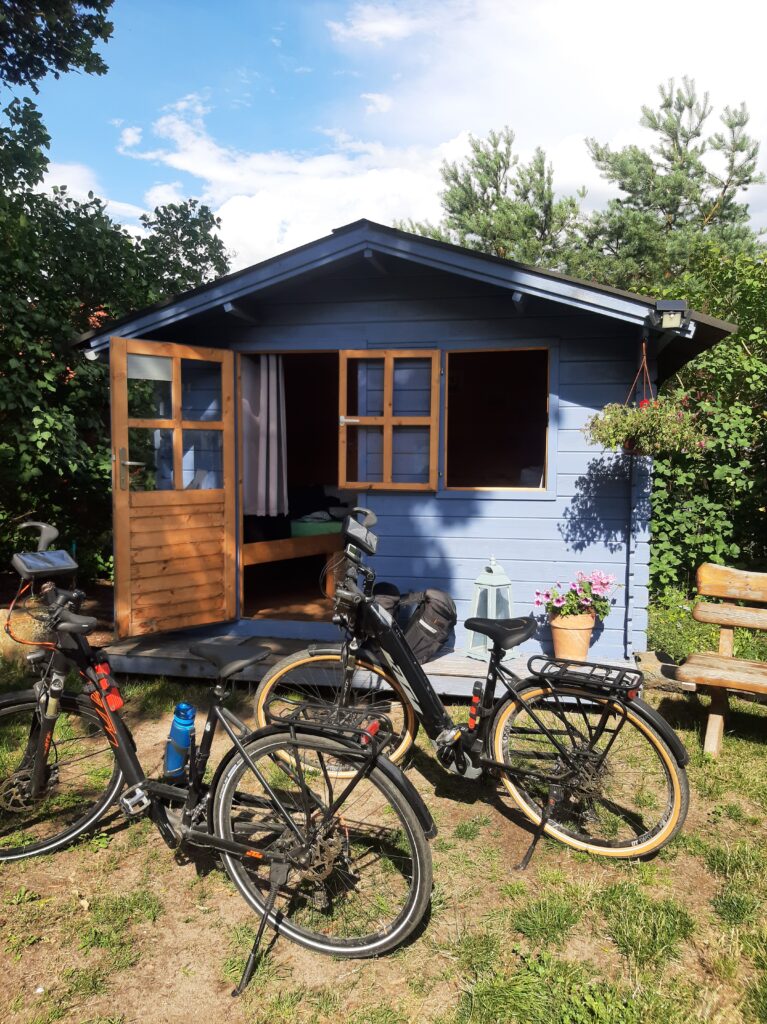 Nach dem Frühstück verließen wir, die Satteltaschen wieder ordnungsgemäß gepackt und auf dem Fahrrad montiert, die Stadt Fürstenberg/Havel, um Richtung Kratzeburg am Käbelicksee aufzubrechen. Heute war das Wetter warm und wir konnten ohne Weste aufbrechen. Schon nach den ersten paar Kilometern begann der Po wieder zu schmerzen…..😔Durchhalten war die Devise!