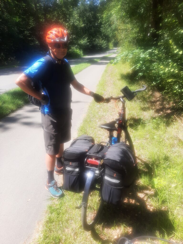 Nach unserer Morgenroutine schwangen wir uns auf unsere Drahtesel. Unsere derzeitige Morgenroutine bedeutet Folgendes: Nach dem Frühstück werden Schultern und Nacken mit Creme gegen Schulter und Nackenschmerzen eingecremt, dann folgt der extra Radler-Po-Balsam fürs Hinterteil, um es möglichst zu schonen. Knieschützer auf die Knie, dann Radlerhose an – extra gepolstert, versteht sich. Dann folgen kurze Dehnungs-und Yogaübungen für Schulter und Nacken. Satteltaschen täglich neu packen, denn wundersamerweise befinden sich die Dinge, die man braucht immer ganz unten -eh kar. Aber auch da bekommt man Routine! Auschecken …..