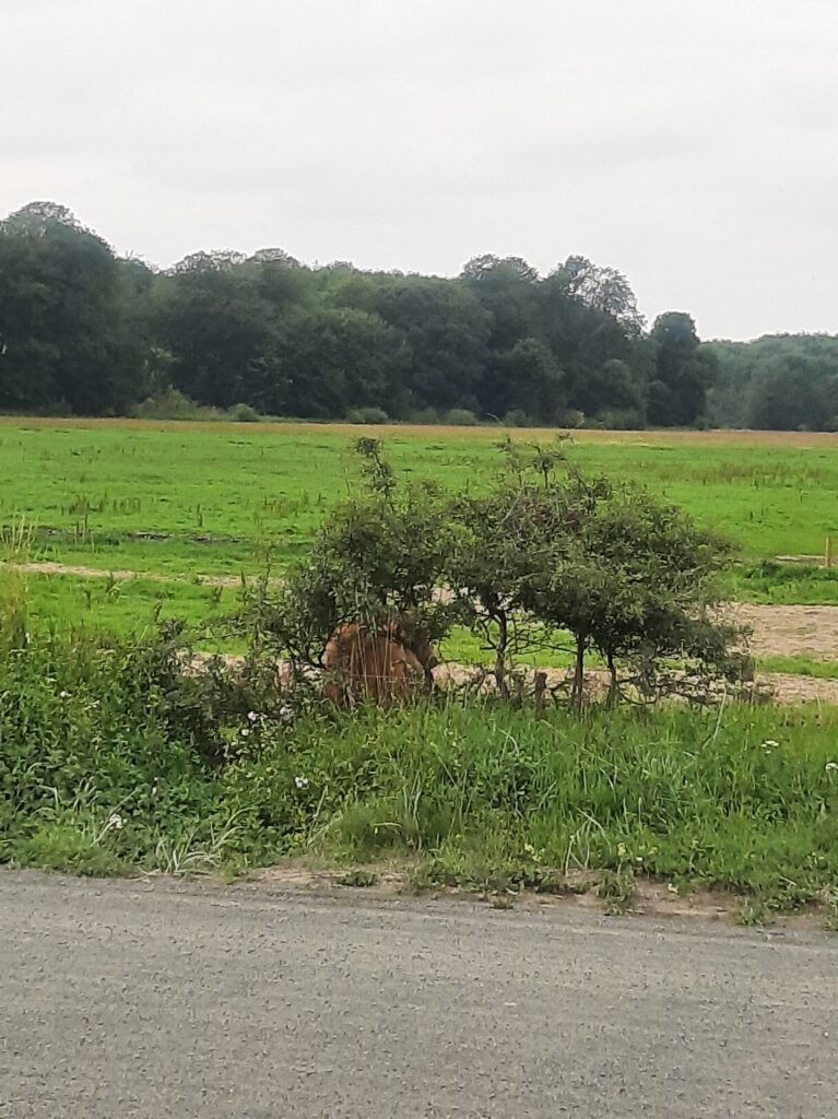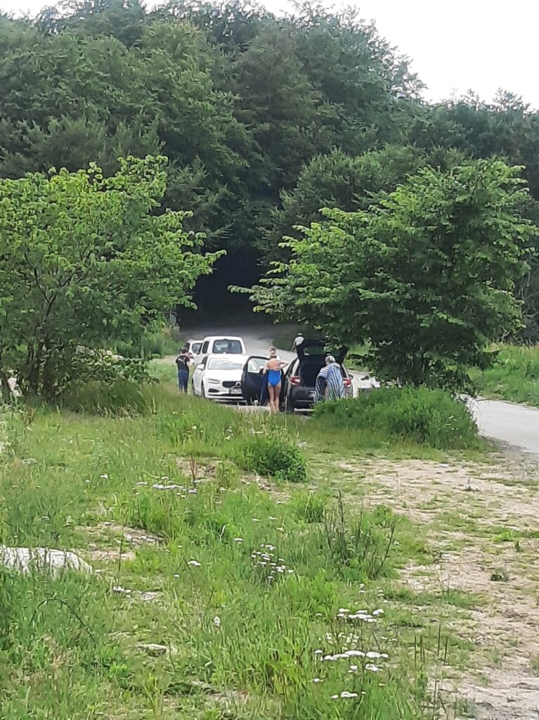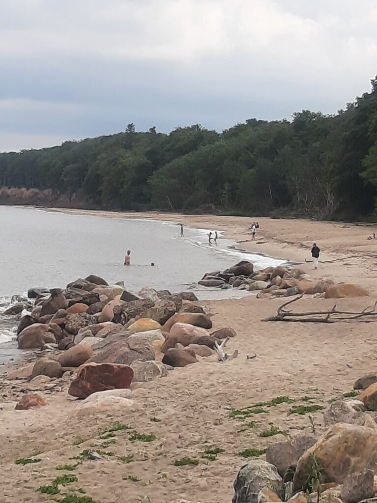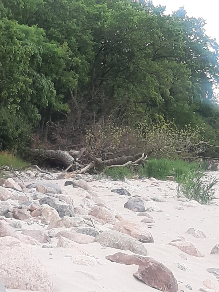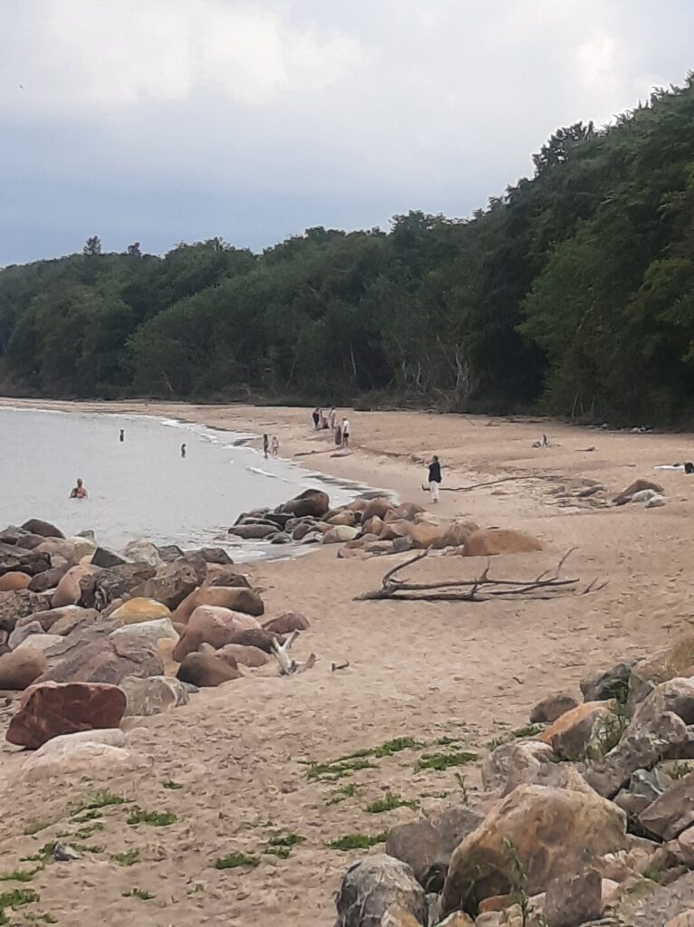 Nach der Ankunft mussten wir unser Regengewand anlegen, konnten es aber bald wieder ablegen, der Regen eilte uns voraus und wir fuhren auf nassem, sandigem Waldboden, was ziemlich schwierig war , durch den dänischen Wald entlang der Küste, wo es kilometerlange Sandstrände gab. Wunderschön!