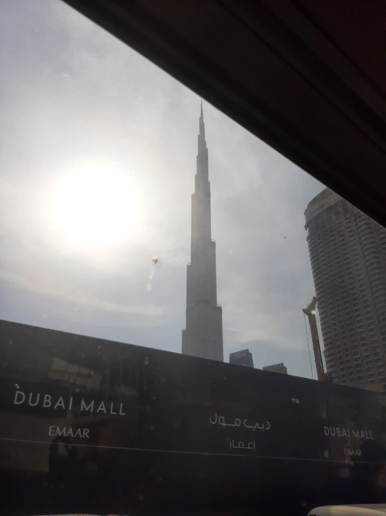 Wieder zurück in Dubai sehen wir die Stadt der Superlative: Wolkenkratzer, Hochhäuser, Indoor-Schipisten, gekühlte Busstationen, viele ausländische Arbeiter, die nie Bürger von Dubai sein werden und ohne die es in Dubai auch nicht funktionieren kann, viele Suks, teure Luxusgeschäfte,…..