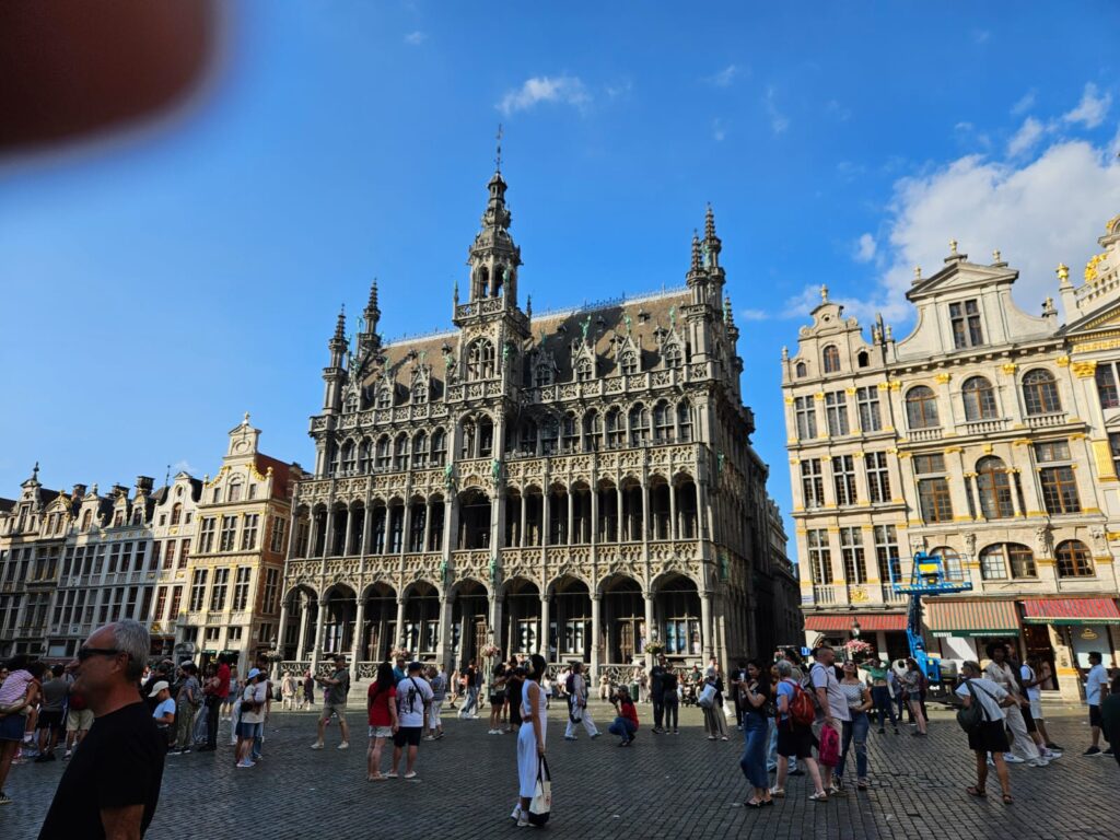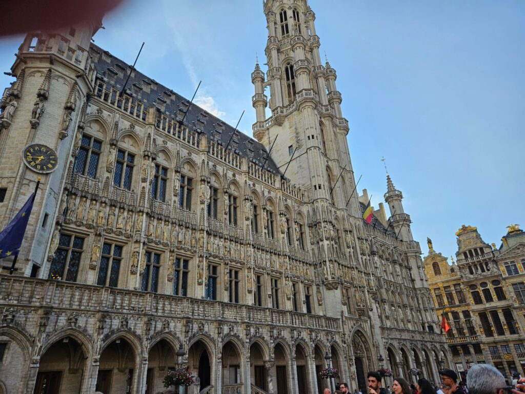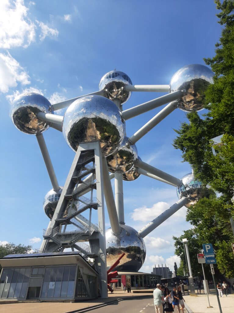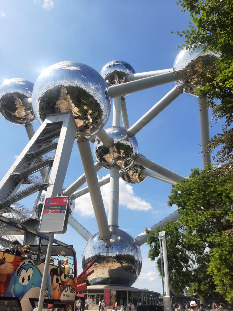 Den heutigen Tag verbringen wir in Brüssel. Nach dem Frühstück nehmen wir den Hop on- hop off-Bus und machen eine Tour durch Brüssel. Ein Tag ist allerdings zu kurz, um Brüssel zu erkunden, also picken wir uns ein paar Sehenswürdigkeiten heraus. Wir beginnen beim EU-Parlament. Das war leider heute geschlossen, weil Samstag ist. Trotzdem können wir durch den Park marschieren und erfahren, dass 30 000 Mitarbeiter für diese Institution beschäftigt sind. Wir fahren auch am Königspalast vorbei und werden daran erinnert, dass Belgien eine konstitutionelle Monarchie ist. Das fühlt sich in Brüssel, der Europahauptstadt, ziemlich seltsam an…Dann fahren wir weiter und stoppen beim unspektakulären Menneken Pis, der bereits 400 Jahre alt ist und um den ein ziemliches Aufheben gemacht wird. Weiter geht’s wieder zum Grande Place. Schließlich fahren wir weiter zum wirklich imposanten Atomium, das anlässlich der Weltausstellung 1958 gebaut wurde und einen 127-fach vergrößerten Schneekristall darstellt. Unser letzter Stopp führt uns zu Montmartre und der Sacre Couer Kirche auf den Hügeln Brüssels.