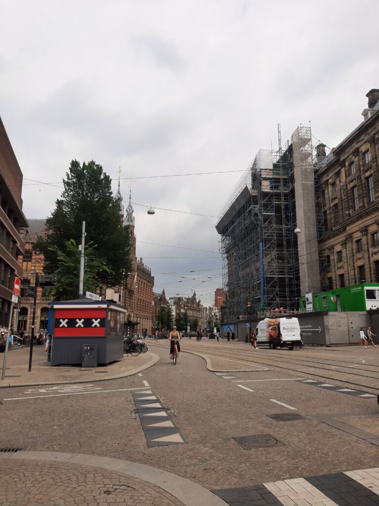 Heute packen wir zum letzten Mal unser Satteltaschenchaos und parken unser Gepäck im Hotel. Danach machen wir Amsterdam noch einmal unsicher. Erst gehen wir zum Käseladen, wo es viele verschiedene Käsesorten aus den Niederlanden und auch aus anderen europäischen Ländern gibt. Danach gehen wir zum Königspalast in Amsterdam, der ein reines Amtsgebäude ist, denn die Königsfamilie wohnt in der Königsstadt Den Haag.