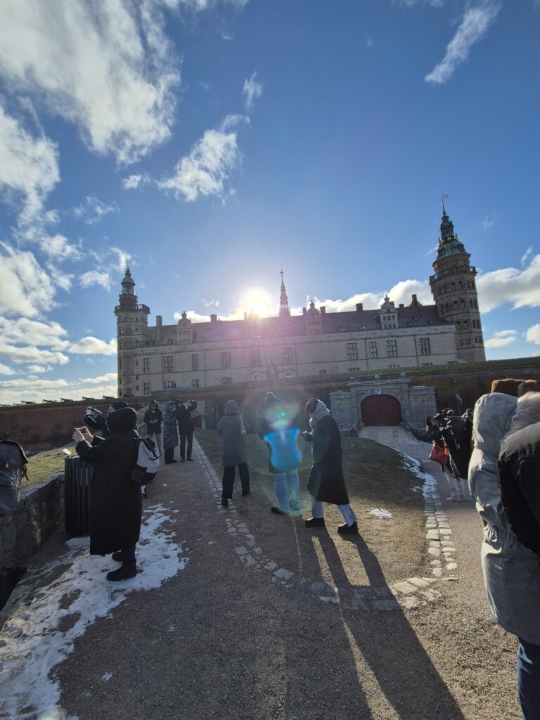 In Helsingør angekommen besuchten wir Schloss Kronberg, in dem Shakespeares Macbeth spielen soll. Dieses Schloss konnte gebaut werden, weil schon vor Jahrhunderten die Könige Dänemarks hier Zoll einhoben, damit die Schiffe diese Meerenge durchqueren durften. Schweden liegt nur wenige Kilometer von der dänischen Küste entfernt. Die Stadt war damals sehr bedeutend und ihr Reichtum war durch diesen Zoll begründet.