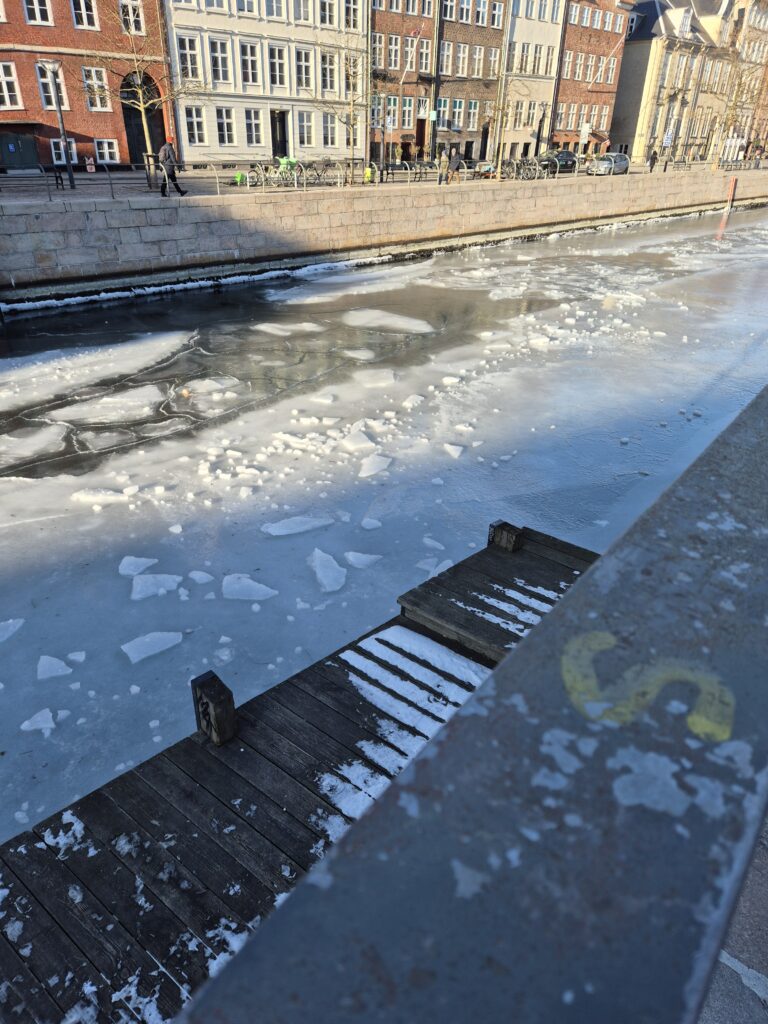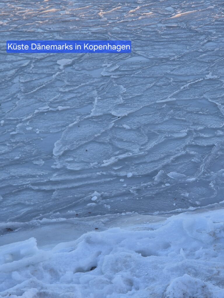 Obwohl es 0 Grad hatte, blies der Wind eisig kalt! Die Kanäle Kopenhagens sind zugefroren und auch das Meer ist am Ufer zu einer Eisdecke geworden! Angeblich ist es der kälteste Winter seit 20 Jahren und es soll die nächsten zwei Wochen so bleiben! Trotzdem: Kopenhagen ist eine Reise wert – und zwar zu JEDER Jahreszeit!